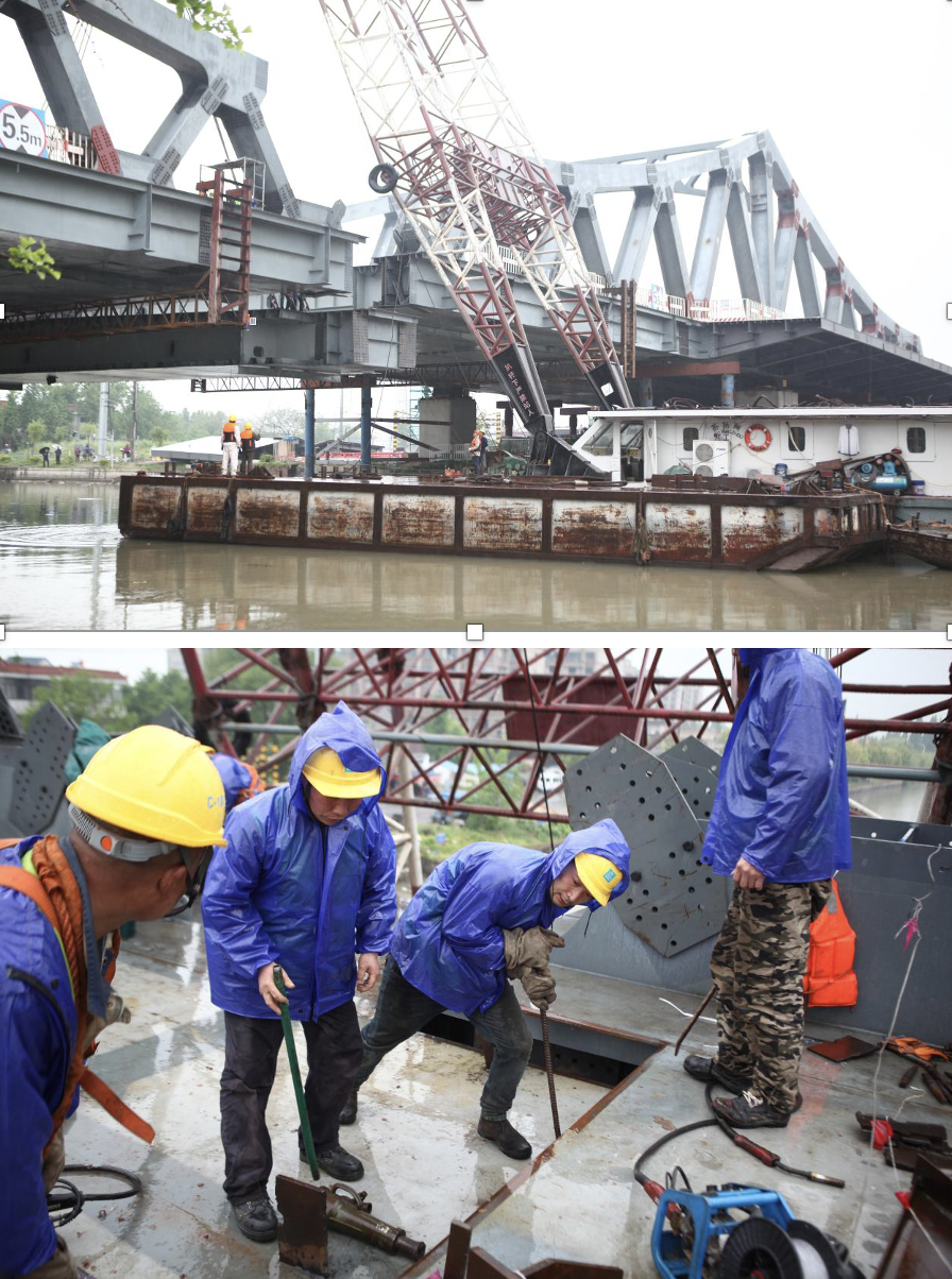 項目自2019年12月份進場以來,海通公司工程部與施工單位緊密溝通,克服了技術(shù)與管理方面的各種難點。特別在鋼桁架箱梁水上吊裝對航道交通管制、吊裝工效、安全管理上達到了設(shè)計和規(guī)范要求;一次性完成了全橋高強螺栓12.2萬套栓接精度的合格驗收;在高位落梁安全風險極高的情況下,邊跨最大落梁高度高達2.5m;攻克了主跨高空定位懸臂拼裝及線型技術(shù)的難點;調(diào)整了鋼結(jié)構(gòu)合龍口誤差,溫差補償及無應(yīng)力狀態(tài)合龍等技術(shù)問題……海通公司科學(xué)制定施工方案、堅持高標準的施工要求,并加大對施工過程監(jiān)管力度,順利完成了無裂縫、無安全事故及各項控制指標的合龍要求。